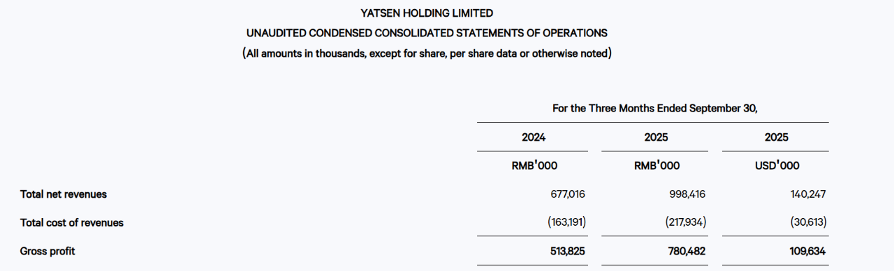 根据财报显示,2025年第三季度,逸仙电商实现净营收9.984亿元,较去年同期增长47.5%,超出此前业绩指引;同期,实现毛利润7.805亿元,同比增幅达51.9%,毛利率亦从去年同期的75.9%提升至78.2%,净营收与盈利质量同步改善。