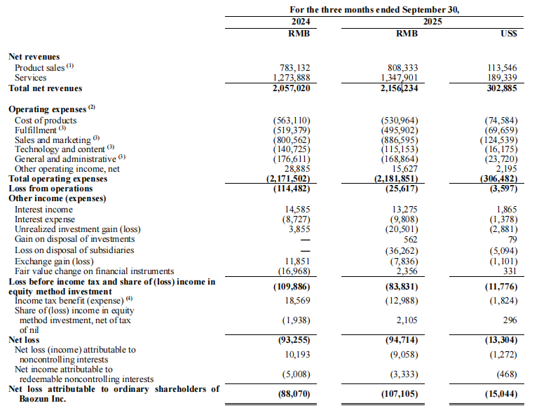 11月25日,宝尊电商公布了截至2025年9月30日的第三季度财报。